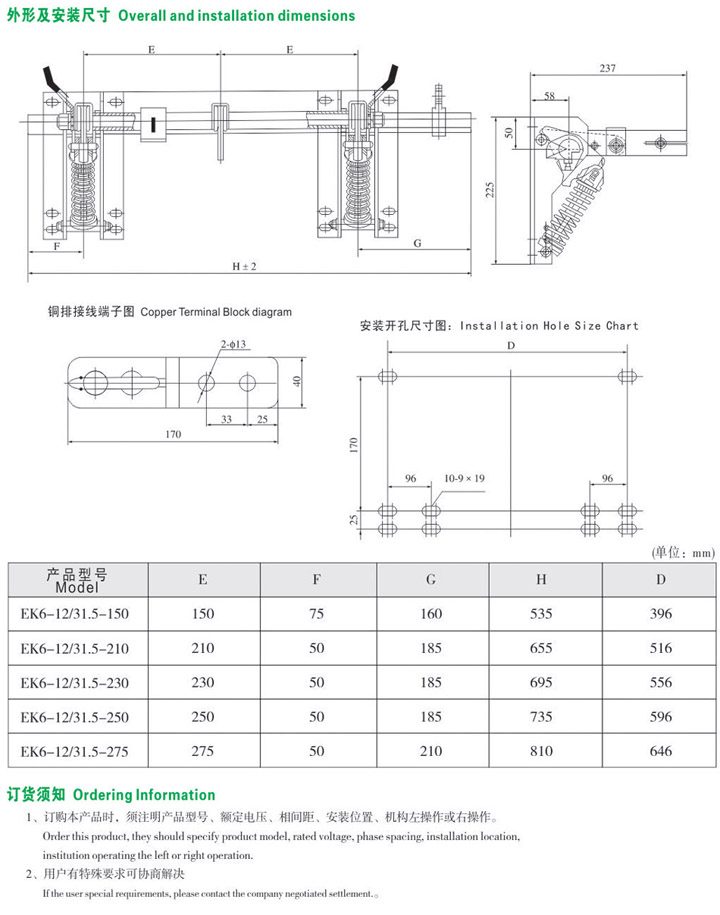 接地開(kāi)關(guān)可水平、垂直、斜安裝;