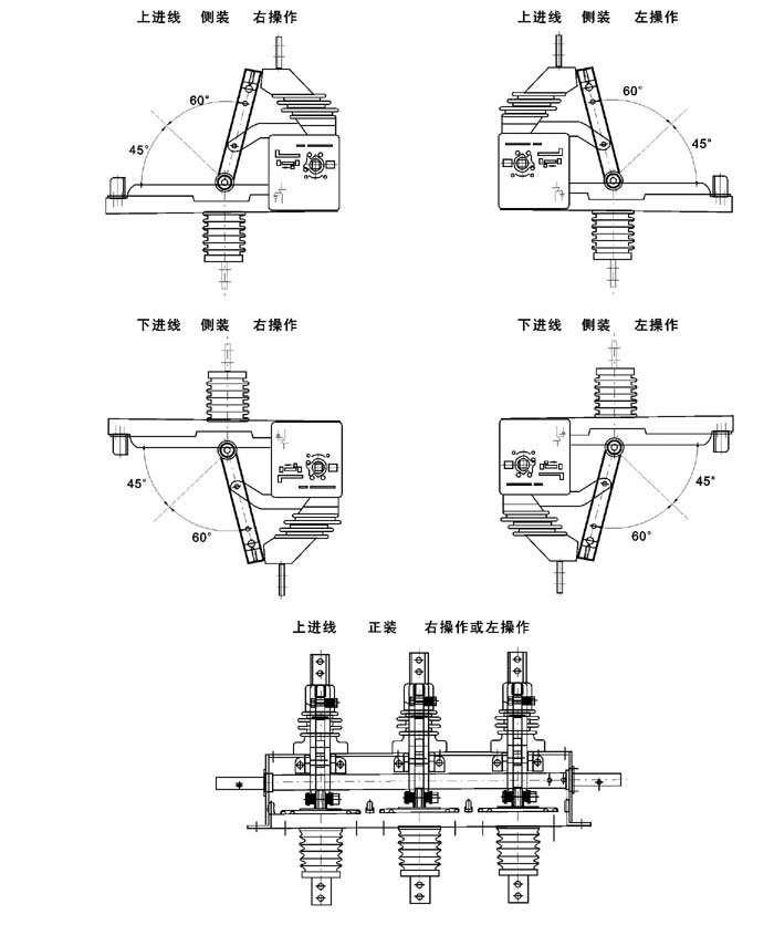 單斷點(diǎn),三工位結(jié)構(gòu)確保隔離開關(guān)合閘時(shí)不能接地,接地時(shí)不能合閘。